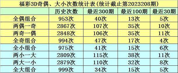 在前10期开奖中,两大一小组合出现3次,全大组合出现0次,全小组合出现4次,两小一大组合出现3次,本期预计开出两大一小组合。