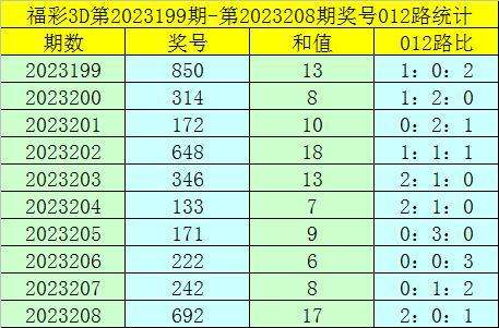 福彩3D第2023209期012路分析