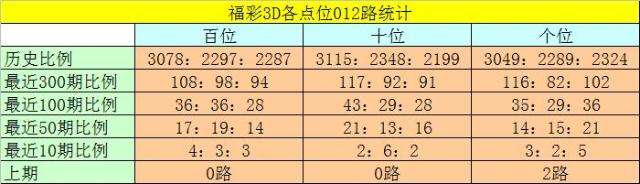 百位分析:该位最近10期开出了4个0路号码、3个1路号码、3个2路号码,0路号码热出。本期排除2路号码,参考号码:7。