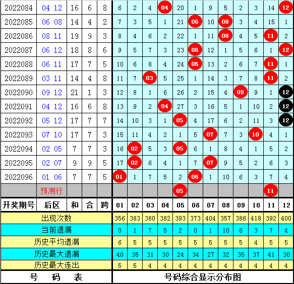 5、在历史同期第097期开奖中,前区号码质合总比例为23:47,质合号码出现比例与理论基本相当,本期预计合数号码走热,参考质合比2:3;