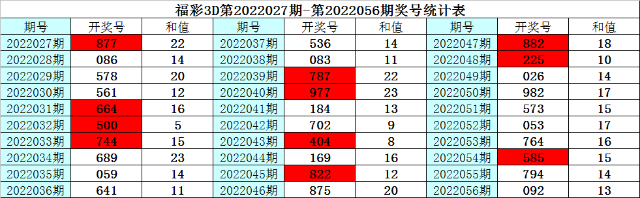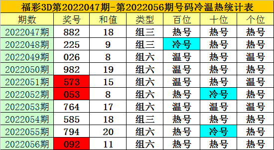 一、上期回顾:福彩3D第2022057期开出奖号546。