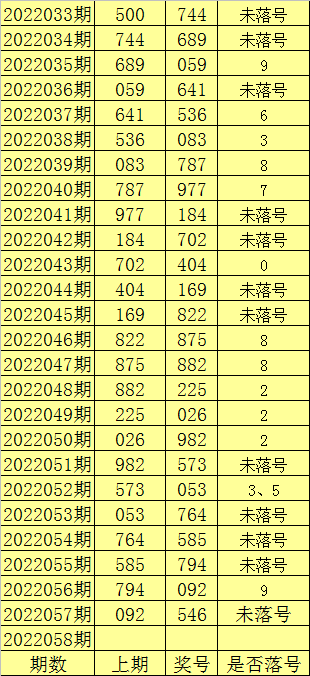 福彩3D第2022058期推荐
