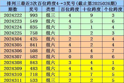 第2024308-第2024310期奖号:843、483、718,其下期奖号为:533,首位号码跨度为2;
