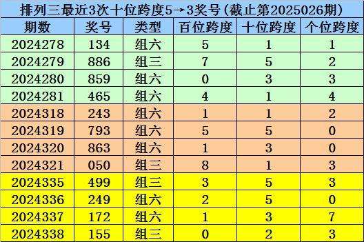 第2024318-第2024320期奖号:243、793、863,其下期奖号为:050,中位号码跨度为8;