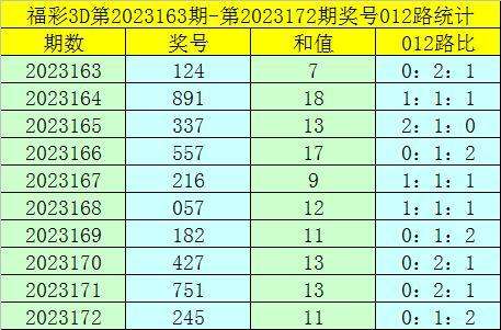 上期回顾:福彩3D第2023172期开出奖号:245。奖号为组六形态,与试机号没有同,奇偶比为1:2,大小比为1:2,012路比为0:1:2,和值为11,跨度为3。