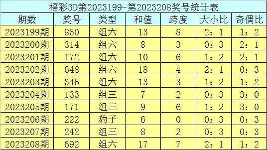 开奖回顾:福彩3D第2023208期奖号:692。