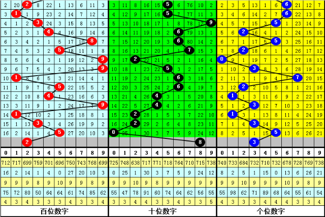 012路分析:最近10周星期三奖号012路总比例为15:8:7,012路号码轮空期数比为0:3:3,上周星期三奖号012路比为1:2:0,本周星期三注意1路号码走冷,看好2路号码热出,参考012路比1:0:2。