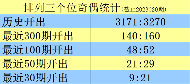 上期回顾:排列三2023020期奖号为488,类型为组三,奇偶比为0:3,大小比为2:1,和值为20。