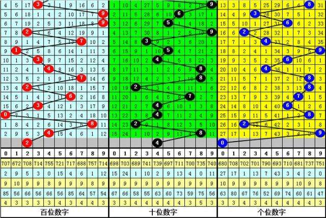 在百位前9次出现号码4之后,下期百位分别开出奖号:9-8-7-4-0-2-5-9-7,其中开出号码个数大小比是6:3,012路比是3:3:3,奇偶比是5:4。