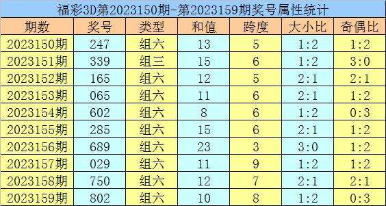 开奖回顾:福彩3D第2023159期开出奖号802。奖号形态为组六,奇偶比为0:3,012路比为1:0:2,大小比为1:2,和值为10,跨度为8。
