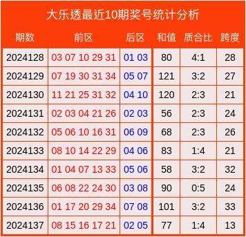 最近10期大乐透奖号统计分析表