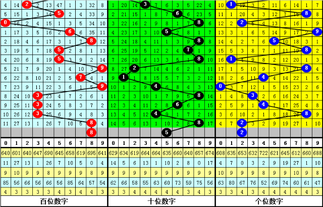 百位:大号开出次数相对较多,上期开出大号之后,本期看好大号重复开出;另外,在最近20期奖号中,该位0路和2路号码表现非常活跃,占开奖总数的85。0%,本期继续关注0路或2路号码开出,关注号码8。