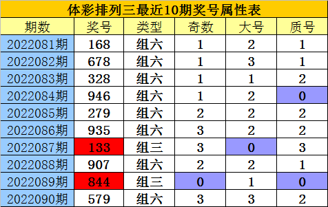 组选类型:历史同期第091期奖号中,豹子号码开出1期,组六号码开出10期,组三号码开出6期,最近三年同期分别开出:组六、组三、组六号码,本期预计开出组三号码。
