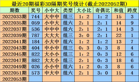 奖号类型判断:近期周五组六开出较少,上周五为组六,组三出现较多,本周五重点关注组六号码。