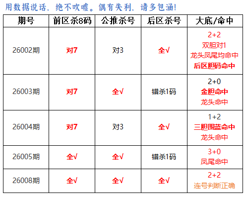 上期前区杀8码全对,公推前区杀4码全对,后区杀号全对。会员文章中连号判断正确,大底命中2+2,本期再接再厉。