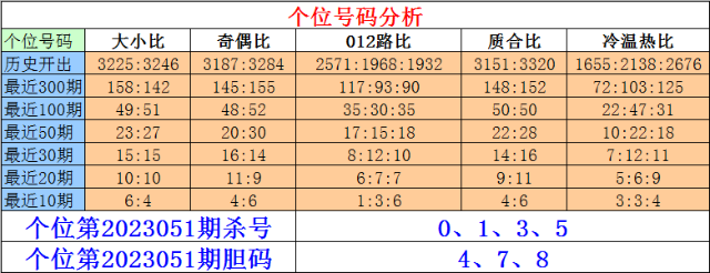 近期百位大号明显较热,当期连出6次,本期注意大号继续出现;该位奇号走势相对较冷,最近4期连开奇号,明显开始转热,本期预计奇号再出。百位本期杀号:0238,胆码关注:579。