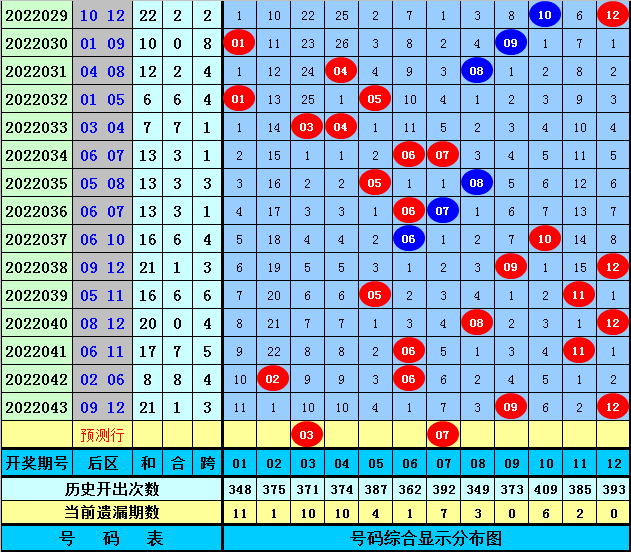 在2022年开出的43期奖号中,前一区出号79个,前二区出号67个,前一区出号69个,前二区出号较少;