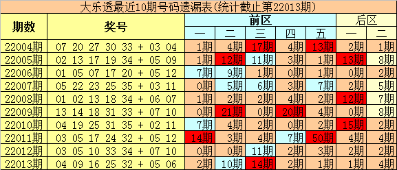 大乐透前区最近10周星期六(第2021138期-第2022013期)奖号频次统计: