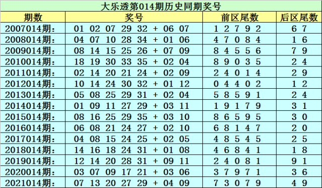 出现1次的奖号:07 13 14 15 17 23 24 29 30 32