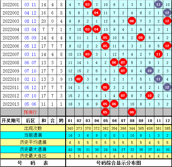 其中,后区奇偶比为26:14,大小比为27:13,012路比为13:13:18,本期后区金胆参考05。