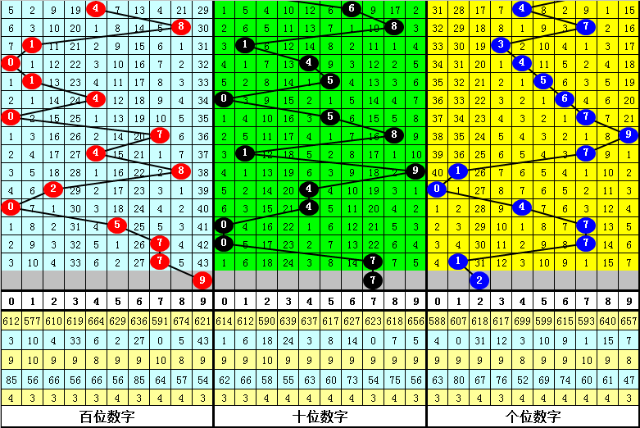 百位分析:百位最近9期出号:0-7-4-8-2-0-5-7-7,奖号012路比为2:4:3,大小比为5:4,奇偶比为4:5,本期百位参考号码169。