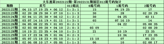 体彩大乐透第2022132期前区奖号012路分析: