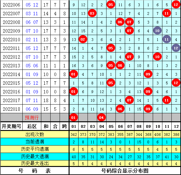 后区分析:上期后区奖号为06+09,本期后区排除重号,四码参考01、03、04、11。