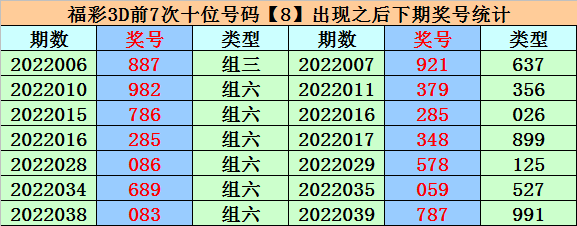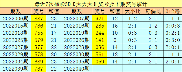 开奖回顾:福彩3D第2022039期开出奖号为787。组选类型为:组三,号码大小比为3:0,奇偶比为2:1。