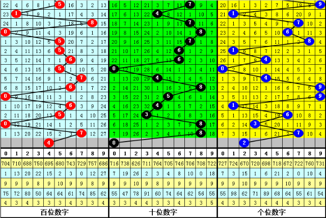 百位分析:百位上期开出号码7,历史上该位号码7出现了729次,最近100期号码7出现次,上期间隔5期再次出现。