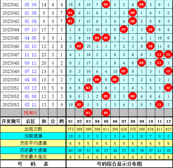 上期该位开出热码之后,本期预计该位热码再次出现,关注热码05。