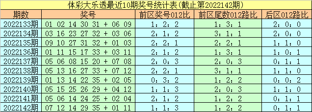 体彩大乐透第2022143期前区尾数012路分析: