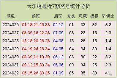 大乐透最近7期奖号和数据分析表