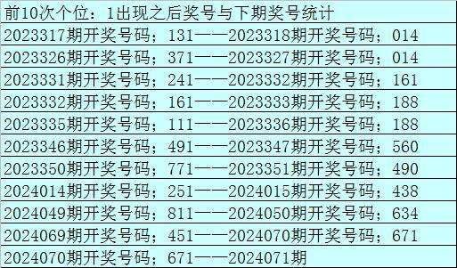上期回顾:福利彩票3D第2024070期开奖结果:奖号为671,奖号和值为:14,奖号跨度为:6,奇偶形态为:偶奇奇,大小形态为:大大小。