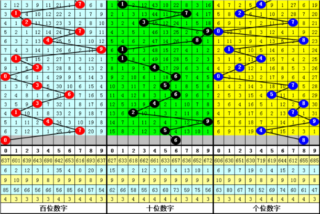 百位分析:上期出现号码7为:质数、大号,在连续9期开奖中,百位分别为:质数、小号:1;质数、小号:3;合数、小号:0;质数、小号:3;合数、大号:6;质数、小号:3;质数、小号:1;合数、小号:4;质数、大号:7,其中小号频次较少,合数出号较少,百位本期注意合数、小号开出。