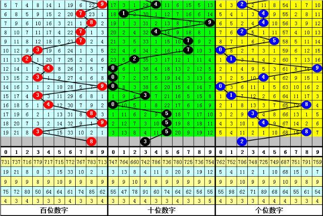 前7次第二位号码开出奇数、大号时奖号分别为:292、754、894、775、370、853、954,其中奇偶总比例为13:8,有4期奇偶比与上期奇偶比相同;号码大小总比例为13:8,有4期奖号大小比与上期大小比相同;