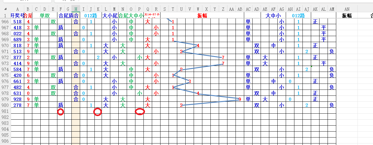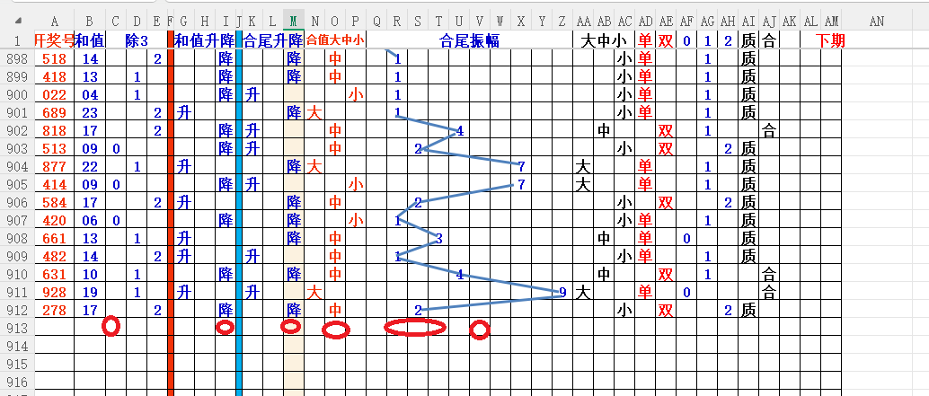 如上图2,012路分析,01路尾走比较好,关注0369147尾;