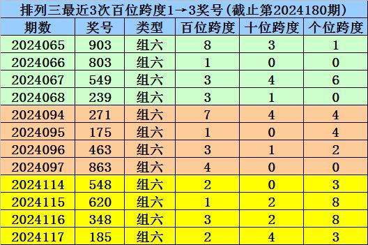 第2024094-第2024096期奖号:271、175、463,其下期奖号为:863,首位号码跨度为4;