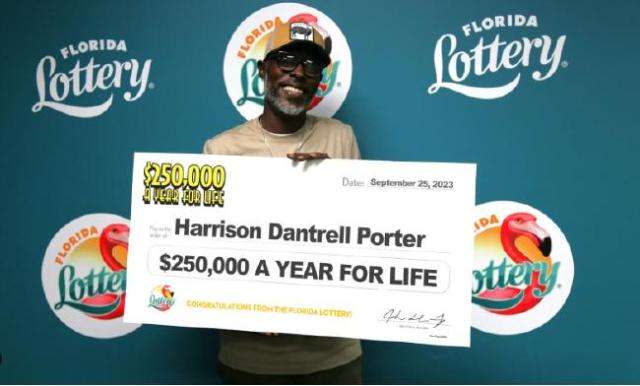 现年46岁的哈里森·波特 (Harrison Porter)来自佛罗里达州劳德代尔堡,一天,他去杂货店购物时顺手买了一张即开型彩票。据了解,这款彩票名为“每年25万美元的终身刮刮游戏”,单张彩票的价格是10美元,每张彩票有15次中奖机会,头奖的兑取方式是,自中奖之日起终身每年可以领取25万美元,也可以选择一次性领取奖金。