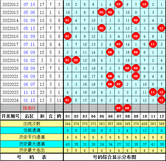 后区分析:在第025期历史同期开奖中,后区奖号一奇一偶组合开出5次,全奇组合开出3次,全偶组合开出7次,本期后区预计出现一奇一偶组合,看好号码06、07、08、09。