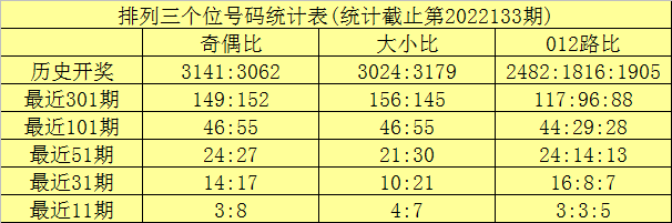在连续11期奖号中,该位奇偶比为5:6,奇数出现较少,本期适当关注奇数回补;