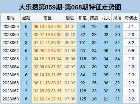 上期回顾:大乐透23068期开出奖号:前区21、22、24、27、31,后区 07、08。