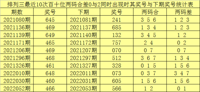1。百位:最近9次奇偶总比例是3:6,012路总比例是5:2:2,大小总比例是3:6,本期预计百位开出号码0236,偶数0可以作为胆码。