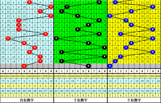 上期第一位开出奖号:7,重复开出,表现较热,最近10期该位热码表现非常低迷,本期适当关注该位热码逐渐回补,参考号码4。