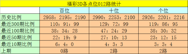 百位分析:该位最近10期开出了6个0路号码、4个1路号码、2路号码全部轮空,0路号码热出,2路号码走冷。本期排除2路号码,参考号码:9。
