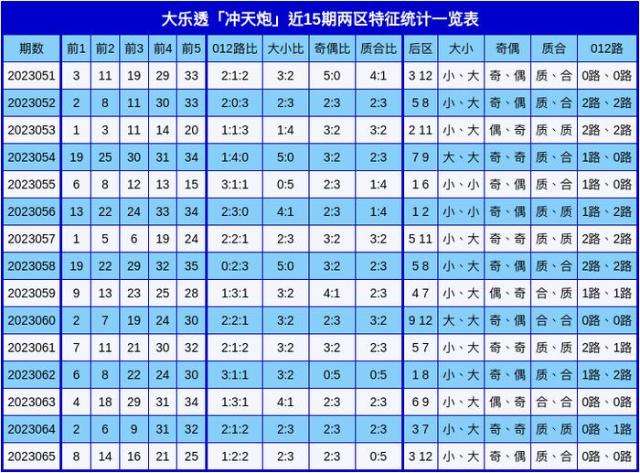 冲天炮大乐透第23066期前区分析: