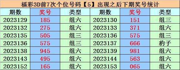 个位分析:上期个位开出奖号5,个位历史上号码5已开出770次,最近100期个位号码开出5次,上期号码为重号。