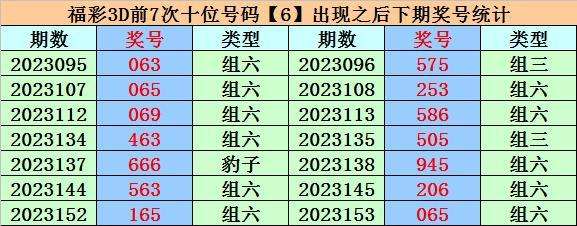 十位分析:十位上期奖号为6,历史上十位号码6已出现795次,最近100期该号码开出6次,上期为重复号码。