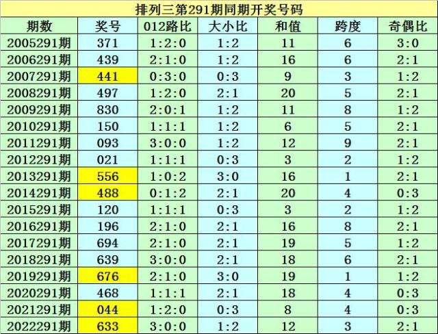 本期为排列三第2023291期开奖,开奖日期为:2023年11月1日,历史上排列三第291期已开出了18次奖号,历年同期开出号码分别为:371-439-441-497-830-150-093-021-556-488-120-196-694-639-676-468-044-633。