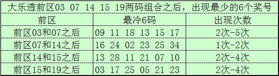 前区冷码统计:大乐透第25039期前区奖号为:03、07、14、15、19,截止第25039期历史上大乐透已经开出了2707期奖号了,在连续两码奖号中: