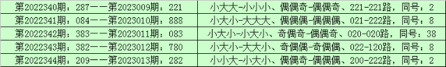 其直选大小形态为:小大大-小大小-小大小-小大小-小小大;